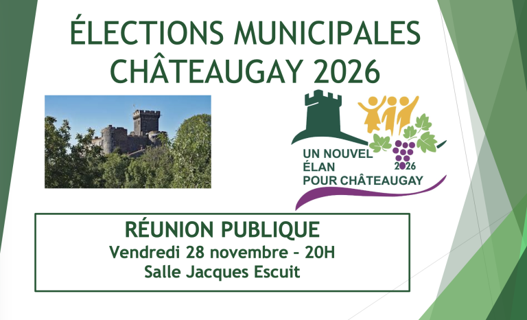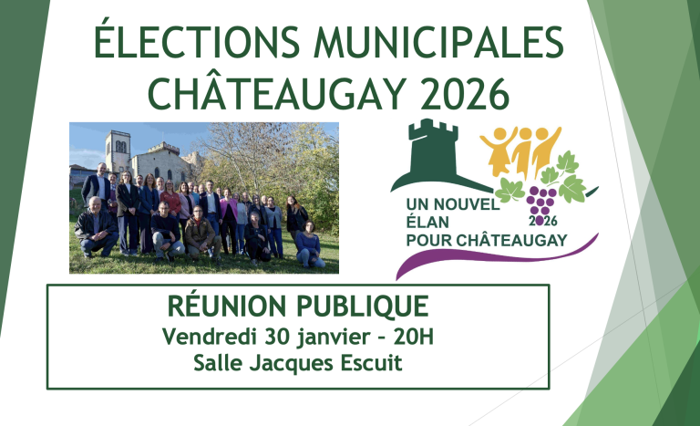 Lors de cette première réunion publique le 28 novembre 2025, nous vous avons présenté la liste "Un nouvel élan pour Châteaugay" ainsi que nos grandes thématiques et nos axes de travail.