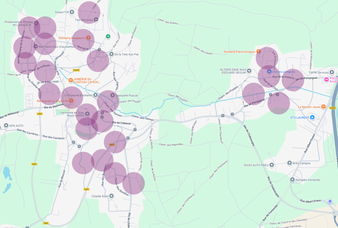 (Pour des raisons de discrétion et de respect de la vie privée, les 25 repères sont anonymes et avec une position volontairement décalée de façon aléatoire par rapport à la position réelle)