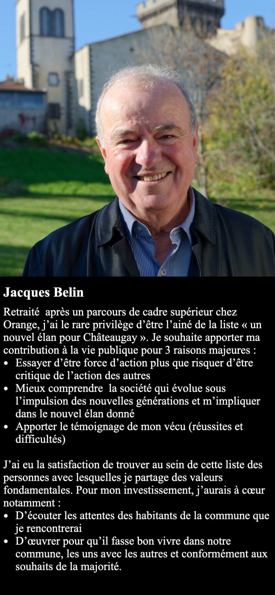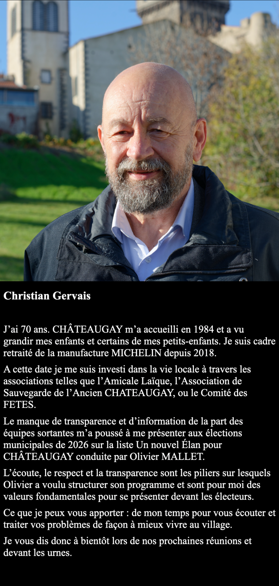 J’ai souhaité constituer une liste pour les prochaines élections municipales des 15 et 22 mars 2026 pour donner un Nouvel Élan pour Châteaugay.